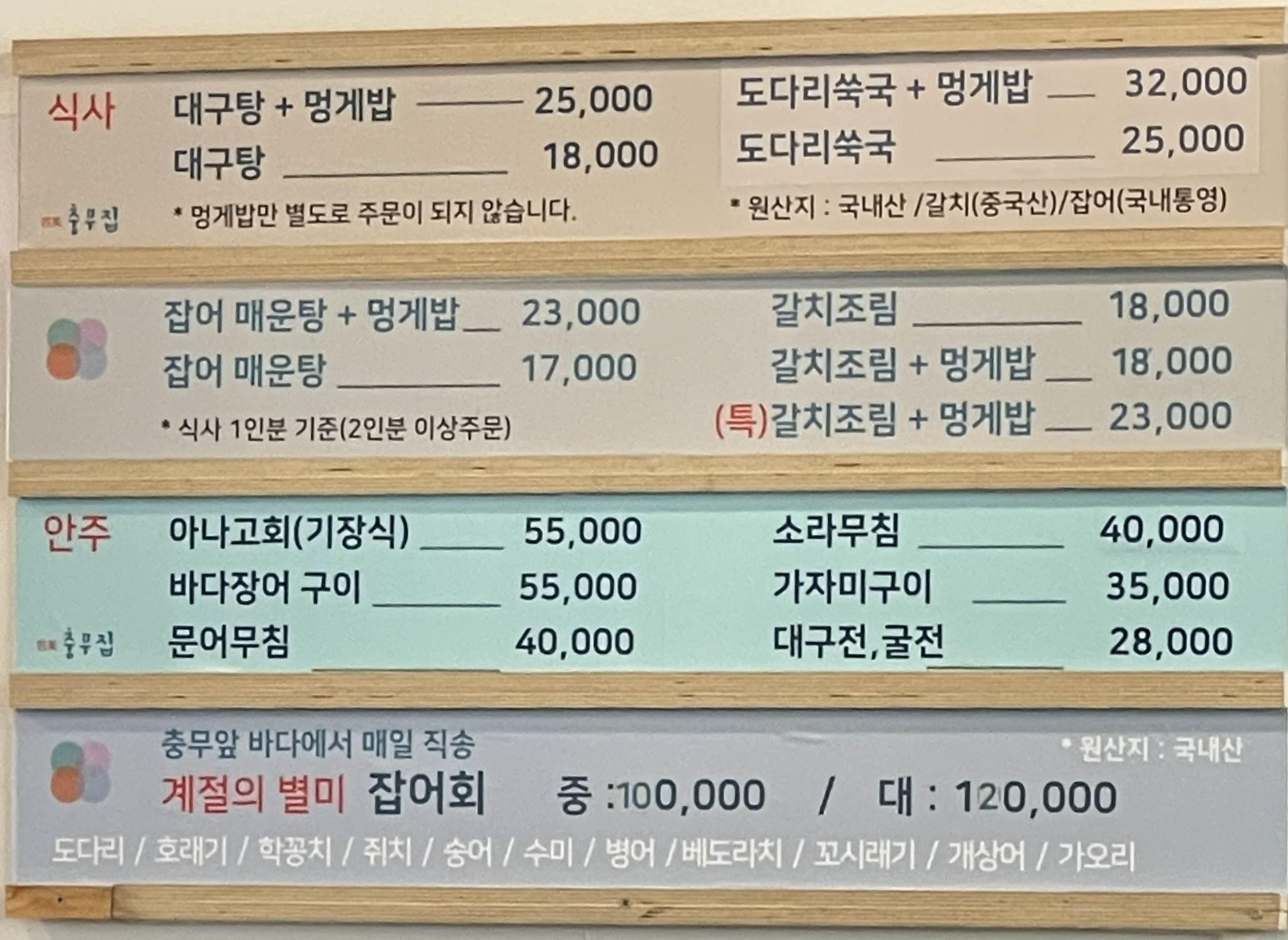- 이번에 먹었던 잡어회 및 민어탕은 다소 실망스러웠으나 봄철 도다리쑥국이 정말 맛있으니 봄이 오면 꼭 한번 방문해볼만한 곳 입니다.
